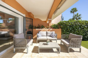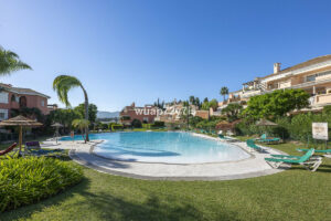Este magnífico apartamento de 2 dormitorios y 2 baños se encuentra en la exclusiva urbanización Park Beach, a tan solo unos pasos del Mediterráneo. Al ser una vivienda en esquina, disfruta de una privacidad excepcional, un jardín envolvente único y vistas panorámicas al mar y al Peñón de Gibraltar.