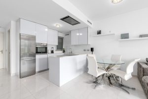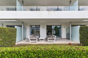 Moderno apartamento de dos dormitorios, situado en planta baja, con orientación oeste, sol por la tarde y acceso directo a los jardines comunitarios y a la piscina.