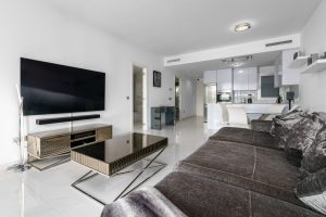 Hay un amplio salón y una cocina abierta totalmente equipada con todos los electrodomésticos. La propiedad se vende junto con una plaza de aparcamiento subterráneo y un trastero.