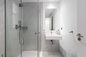 La propiedad cuenta con dos dormitorios, ambos con armarios empotrados. El dormitorio principal tiene un cuarto de baño en suite y acceso directo a la amplia terraza privada.