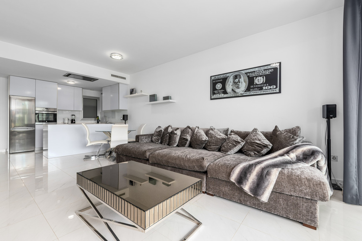 Hay un amplio salón y una cocina abierta totalmente equipada con todos los electrodomésticos. La propiedad se vende junto con una plaza de aparcamiento subterráneo y un trastero.