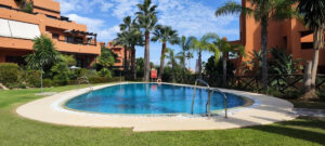 Amplio Bajo en Jardines de Nueva Galera, Estepona – ¡Luminoso, Acceso Directo a Piscina y Terraza Acristalada!