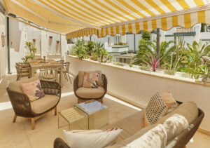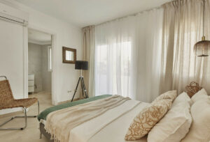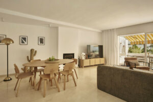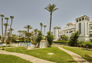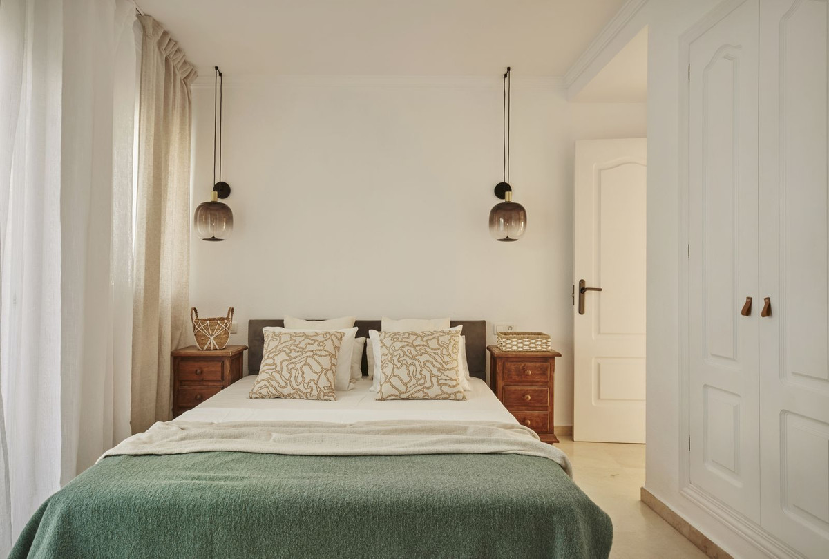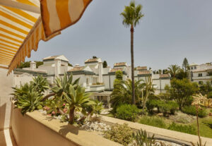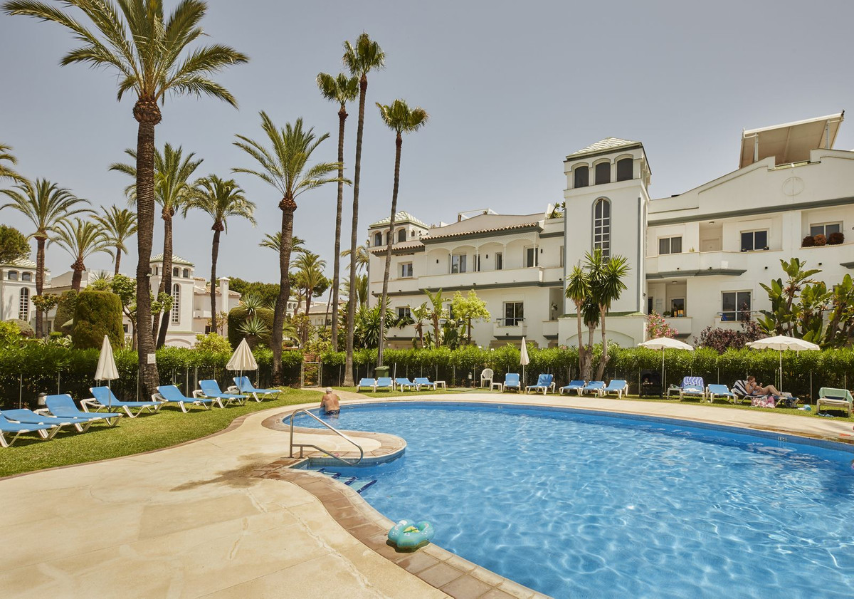 El apartamento en sí es de dos dormitorios, con un salón amplio y una terraza orientada al sur, con vistas a los hermosos jardines, donde se pueden escuchar los cantos de los pájaros. La urbanización es elegante, de estilo andaluz y muy bien cuidada.