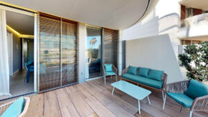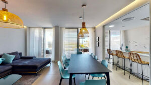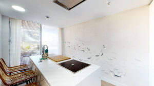 Equipado con las últimas comodidades, el apartamento cuenta con sistemas de domótica de última generación y tecnología de aerotermia para garantizar eficiencia energética y confort. La cocina está equipada con electrodomésticos de la prestigiosa marca Gaggenau, ofreciendo una experiencia culinaria de alta calidad. Los materiales utilizados en toda la propiedad son de primera categoría, lo que se refleja en cada rincón.