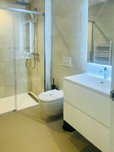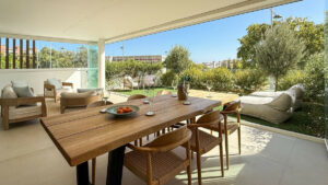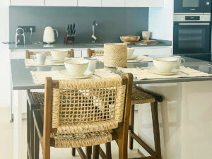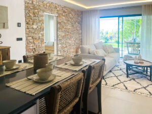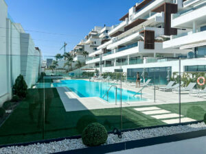 Fantástico piso de lujo ubicado en el centro de Estepona, el jardín de la Costa del Sol. Este piso de nueva construcción está fácil de alcanzar a poca distancia del puerto deportivo de Estepona, cerca del romántico y animado casco antiguo y a sólo 1 km de la playa de La Rada. Ofrece 2 dormitorios y 2 baños, uno de ellos en suite, una cocina totalmente equipada y un amplio salón. Cuidadosamente decorado en una mezcla perfecta de minimalismo escandinavo, acentos boho y toques étnicos. Pero más que eso, es el lugar ideal para la vida al aire libre, ya que también hay una gran terraza cubierta que ha sido recientemente actualizado con cortinas de cristal para el máximo uso de la terraza durante todo el año y un jardín mediterráneo muy agradable con muy bajo mantenimiento. También es bueno saber que el lavadero extra espacioso con lavadora y secadora está justo al otro lado de la puerta principal. Una plaza de aparcamiento subterráneo privado también está incluido en el precio. La exclusiva comunidad cerrada ofrece una gran piscina al aire libre y un gimnasio y entrada segura. Una visita obligada si usted está buscando la casa de vacaciones perfecto o para vivir todo el año.