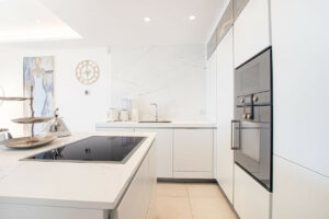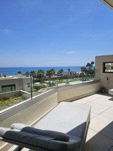 Este es un apartamento perfecto junto al mar, que consta de 2 dormitorios y 2 baños, una cocina abierta con isla y un salón desde donde se puede disfrutar de una magnífica vista del mar Mediterráneo. La zona de estar y el dormitorio principal están conectados a la terraza cubierta de 40m2. El apartamento está situado en una 1ª planta, orientación sur. Hay un garaje subterráneo y un trastero.