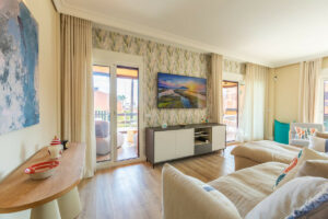 APARTAMENTO EN PLANTA BAJA CON GRAN TERRAZA Y LICENCIA TURÍSTICA CERCA DEL MAR. Ubicación privilegiada en una urbanización de encanto mediterráneo, a solo 200 m de la playa y a 5 minutos en coche de Estepona y del animado Puerto de la Duquesa, donde encontrará todo tipo de servicios, restaurantes y zonas de ocio. Este precioso apartamento en planta baja destaca por su luminosidad, gracias a su orientación sureste, y por su magnífica terraza recientemente reformada, equipada con persianas de cristal, zona de cocina exterior y suelos de parquet que aportan un toque cálido y elegante.