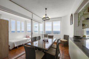 La cocina, independiente y de diseño contemporáneo, ofrece una perspectiva casi cinematográfica del mar. Cocinar aquí no es una rutina, sino un acto de inspiración.