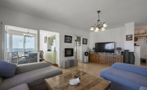 El salón, amplio y abierto, conecta sin esfuerzo con una terraza privada donde el tiempo parece detenerse. Allí, desayunar frente a las olas o compartir una copa al atardecer se convierte en un ritual cotidiano de belleza y calma.