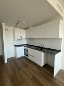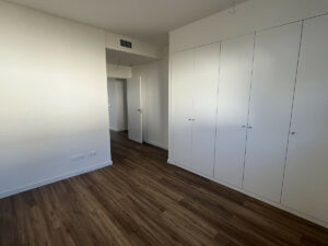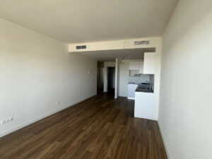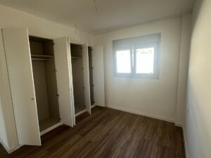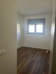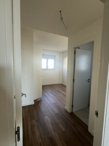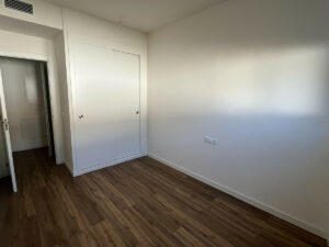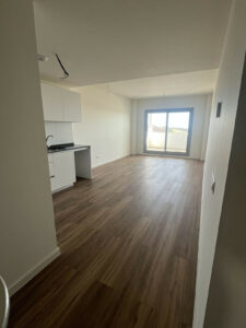 Distribución funcional: dos dormitorios (incluyendo una suite principal con baño propio), un segundo baño completo y una luminosa sala de estar de planta abierta conectada a la terraza mediante grandes puertas acristaladas.