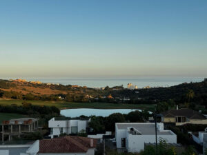 Ubicación esquinera privada: sin vecinos en un lado, lo que ofrece mayor privacidad y vistas panorámicas a los cuidados jardines y al campo de golf de Valle Romano.