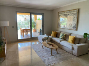 Ubicado en una exclusiva urbanización privada con campo de golf de 9 hoyos, este elegante y espacioso apartamento en segunda planta goza de una ubicación ideal a poca distancia del centro de Estepona y de varias playas galardonadas con Bandera Azul.