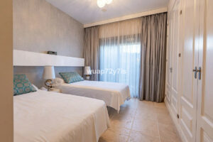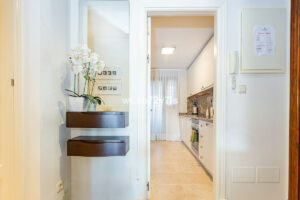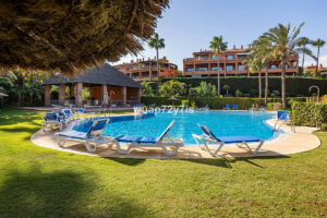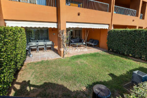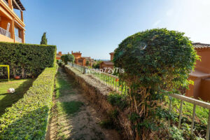 Ubicada en la reconocida urbanización Benatalaya, una de las comunidades cerradas más privadas y seguras de Estepona, esta elegante residencia en la planta baja ofrece una tranquilidad excepcional. Su posición en esquina y su apartado jardín privado crean un remanso de paz rodeado de una hermosa vegetación mediterránea.