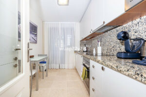 La casa cuenta con dos dormitorios refinados y dos baños modernos, y la suite principal ofrece bañera y ducha a ras de suelo. La calefacción por suelo radiante realza ambos baños y las persianas eléctricas garantizan comodidad y confort en los dormitorios. La cocina totalmente equipada incluye un lavadero independiente y la propiedad cuenta con dos plazas de aparcamiento más un trastero.