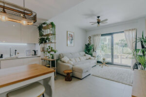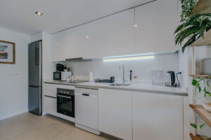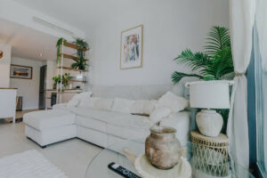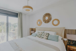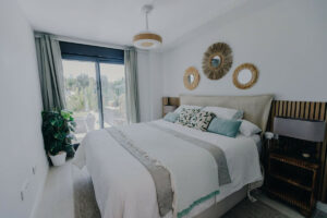 Moderno apartamento en planta baja de 2 dormitorios ubicado en la exclusiva urbanización Aranya, en Selwo, Estepona. La vivienda es de reciente construcción, cuenta con orientación sur y se vende completamente amueblada, ofreciendo un interior luminoso y de diseño contemporáneo. El salón con cocina abierta conecta directamente con una amplia terraza privada y un gran jardín, creando un espacio perfecto para disfrutar del clima mediterráneo, relajarse al aire libre o recibir invitados.