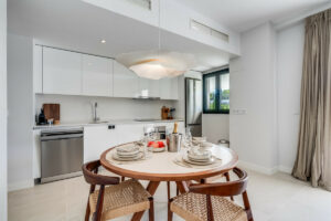 El apartamento ofrece dos dormitorios diseñados con gusto, incluido un tranquilo dormitorio principal con baño en suite, además de un segundo baño contemporáneo. El luminoso salón de planta abierta se conecta de manera fluida con una amplia terraza de 40 m² y un jardín privado de 80 m², creando un espectacular espacio exterior de 120 m² perfecto para relajarse, recibir invitados y disfrutar del clima mediterráneo. La cocina moderna y totalmente equipada completa el interior con funcionalidad y estilo.
