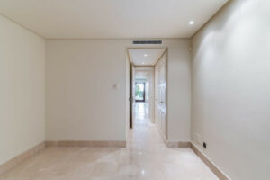 El apartamento se encuentra en planta baja y ofrece unas vistas abiertas e inigualables al mar Mediterráneo, Gibraltar y la costa africana, con la garantía de no tener futuras construcciones delante. La propiedad se presenta en estado impecable, acabada con materiales de la más alta calidad y un estilo elegante y atemporal característico de Doncella Beach.