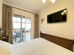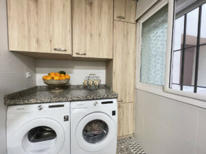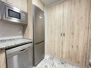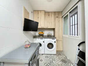 La vivienda, prácticamente a estrenar tras una completa reforma, cuenta con dos dormitorios y un baño. Entre sus estancias, un amplio vestidor permite un espacio de almacenamiento óptimo. El apartamento dispone de aire acondicionado, suelos de gres y armarios empotrados, elementos que aportan confort y funcionalidad. La cocina, totalmente equipada, incluye un práctico lavadero.