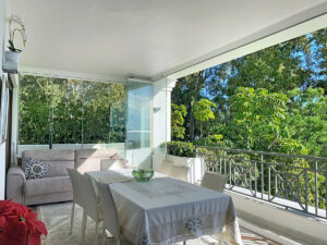 La propiedad combina lujo, confort y tranquilidad, ofreciendo una superficie construida de 88,15 m² y una amplia terraza privada de 40,86 m², diseñada para disfrutar del Mediterráneo durante todo el año. La terraza, completamente acristalada permite una transición fluida entre interior y exterior, creando el escenario perfecto para relajarse o disfrutar de veladas frente al mar durante todo el año.