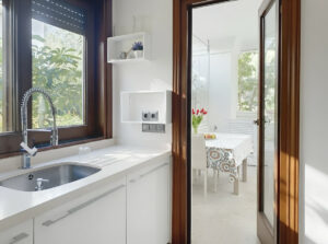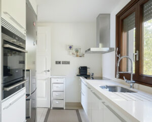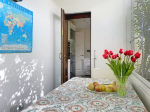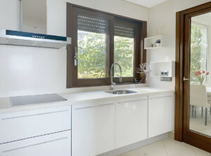 La cocina contemporánea, totalmente equipada, dispone de electrodomésticos SIEMENS, encimera de Silestone, detector de humos y un práctico lavadero independiente y cerrado con ventanas de cristal, ideal para un comedor privado para la cuotidianidad.