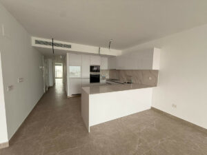 Bañado por la luz natural y orientado para capturar hermosas vistas al mar, el apartamento ofrece un ambiente sereno ideal tanto para la vida cotidiana como para relajantes escapadas vacacionales. Los interiores, cuidadosamente diseñados, cuentan con una amplia zona de estar diáfana que conecta a la perfección con la terraza, ideal para disfrutar de los amaneceres y las cálidas tardes costeras.