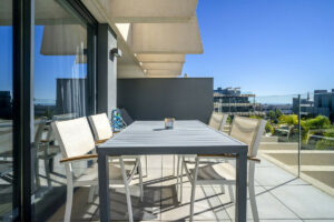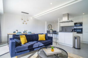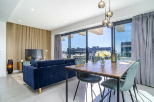 El interior se completa con dos dormitorios de generosas dimensiones y dos baños modernos. El apartamento se vende con plaza de garaje subterránea privada y trastero, aportando comodidad y funcionalidad adicionales.
