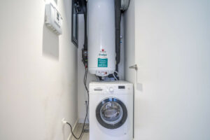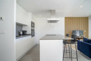 La cocina está completamente amueblada y equipada con electrodomésticos Siemens, diseñada para integrarse con naturalidad en el espacio principal, manteniendo una estética moderna y elegante. La propiedad cuenta además con persianas eléctricas, lavadero independiente y un avanzado sistema de aerotermia con climatización AirZone, que proporciona calefacción y refrigeración eficientes, mejorando el rendimiento energético y garantizando confort durante todo el año.