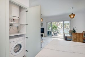 La ubicación es sencillamente inmejorable. Con acceso directo desde el jardín al paseo marítimo y la playa, el Mediterráneo está literalmente a su puerta. Un centro comercial se encuentra a solo un minuto a pie y una conexión directa de autobús al aeropuerto de Málaga para cerca. Mientras tanto, el encantador casco antiguo de Estepona, famoso por sus cafés, restaurantes, boutiques y su auténtico carácter andaluz, está a solo un corto paseo.
