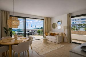 Ubicado en el exclusivo complejo boutique One 80 Suites, esta vivienda orientada al sur ha sido diseñada en armonía con su entorno. Sus ventanales de suelo a techo enmarcan una panorámica ininterrumpida del Mediterráneo desde el salón, mientras que la conexión fluida entre interior y exterior hace que ambos espacios se integren casi por completo.