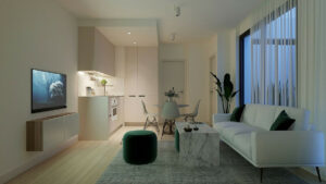 Disfruta de una cocina completamente equipada con los electrodomésticos más modernos, combinando a la perfección estilo y funcionalidad. El espacio abierto de la sala fluye hacia una terraza privada, ideal para disfrutar del sol o cenar al aire libre mientras sientes la brisa marina.