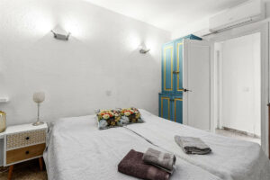 El apartamento dispone de dos dormitorios y un baño completo, todo en muy buen estado y con acabados luminosos que aportan un ambiente armonioso. Para mayor confort, incluye aire acondicionado con bomba de frío y calor.