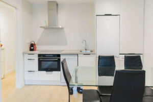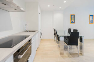La vivienda cuenta con 2 dormitorios, 2 baños completos (uno en suite), y una cocina moderna totalmente equipada con todos los electrodomésticos instalados y lista para estrenar. El diseño interior combina líneas modernas y materiales de alta calidad, garantizando confort y estilo en cada rincón.