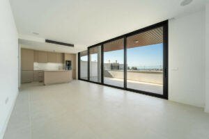 Las ventanas de suelo a techo inundan cada rincón de luz y se abren a una amplia terraza de 35 m², perfecta para disfrutar del clima de la Costa del Sol durante todo el año.