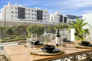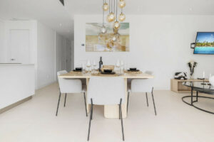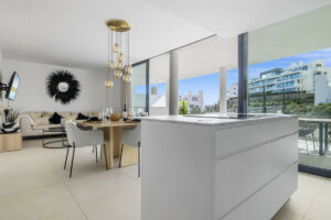 Totalmente amueblado con un diseño moderno y funcional, el apartamento ofrece una distribución abierta que integra a la perfección la cocina, el comedor y el salón, dando acceso a una amplia terraza con orientación oeste, ideal para disfrutar del sol de la tarde y de espectaculares puestas de sol.