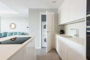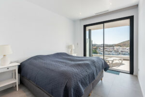 El apartamento cuenta con dos amplios dormitorios y dos elegantes baños, uno de ellos en suite con el dormitorio principal — tu refugio privado de paz y relajación. Ambos dormitorios tienen acceso directo a la terraza, lo que refuerza la sensación de amplitud y conexión con el exterior.