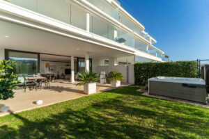 Los espacios interiores se abren de forma natural hacia una terraza y jardín privado de casi 60 m², creando un refugio exterior íntimo perfecto para relajarse, tomar el sol o recibir invitados. Gracias a su orientación suroeste, disfruta de magnífica luz natural y sol de tarde, reforzando la sensación de calma y privacidad. La terraza incorpora ducha exterior y un exclusivo jacuzzi privado, preparado tanto para cloro como para agua salada — convirtiendo la vivienda en un auténtico spa personal donde desconectar en cualquier momento del día.