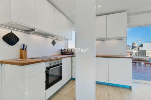 El apartamento cuenta con dos dormitorios con aire acondicionado y un baño recién reformado, donde se encuentra la lavadora. La cocina y el salón están integrados y son muy luminosos. El salón también cuenta con aire acondicionado.