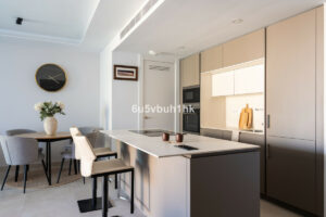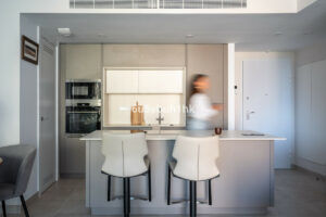 Sus líneas limpias, materiales refinados y electrodomésticos silenciosos convierten la preparación de cualquier comida en un placer, ya sea un café rápido antes de un paseo por la costa o una cena relajada con amigos.