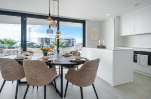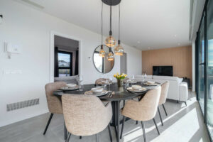 En el interior, cada detalle ha sido cuidadosamente diseñado para ofrecer confort y funcionalidad. La cocina totalmente equipada incluye electrodomésticos de alta calidad como horno, frigorífico-congelador, lavavajillas, cafetera y más. Ambos dormitorios son amplios y luminosos, y los dos baños presentan acabados elegantes y calefacción por suelo radiante para mayor confort durante todo el año.