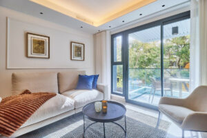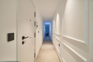 La distribución se ha concebido buscando espacios diáfanos y luminosos donde ningún detalle se ha dejado al azar priorizando funcionalidad y confort. El interiorismo de la vivienda se ha confiado a la prestigiosa firma The White House Marbella. Incluye mobiliario completo, decoración y un avanzado sistema de iluminación de bajo consumo que combinados generan ambientes cálidos y acogedores que realzan el estilo moderno del apartamento. Este paquete tiene un precio de 20.000€ y da valor añadido a la vivienda.