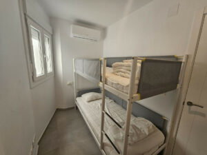 El dormitorio principal es espacioso, mientras que el segundo dormitorio actualmente cuenta con una litera, pero podría caber una cama doble si se necesita. Ambos dormitorios comparten un baño en perfecto estado, con ducha y bañera, lo que ofrece practicidad y comodidad para toda la familia. La propiedad también cuenta con un balcón con espacio suficiente para una mesa pequeña y dos sillas, el lugar perfecto para relajarse y disfrutar del buen tiempo. Vídeo disponible bajo petición. ¡Tenemos las llaves, así que las visitas son muy fáciles!