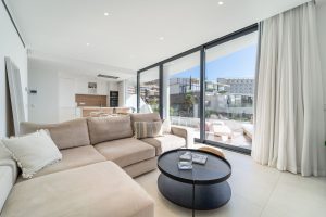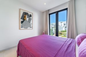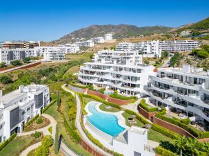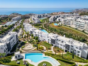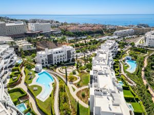 Elegante apartamento con orientación este en Higuerón West, 2 dormitorios, 2 baños, amplio salón-comedor, cocina abierta totalmente amueblada y equipada con electrodomésticos de Bosch, zona de lavadero con lavadora / secadora, gran terraza de 18m2 con vistas parciales al mar, y una terraza trasera de 6m2 con acceso desde los dos dormitorios. Aire acondicionado frío y calor, armarios empotrados en dormitorios, vídeo portero, sistema domótica, pre-instalación de alarma, suelo radiante en ambos baños. Incluye dos plazas de aparcamiento y un trastero.