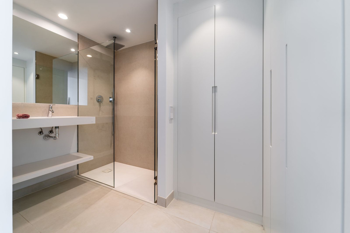 Elegante apartamento con orientación este en Higuerón West, 2 dormitorios, 2 baños, amplio salón-comedor, cocina abierta totalmente amueblada y equipada con electrodomésticos de Bosch, zona de lavadero con lavadora / secadora, gran terraza de 18m2 con vistas parciales al mar, y una terraza trasera de 6m2 con acceso desde los dos dormitorios. Aire acondicionado frío y calor, armarios empotrados en dormitorios, vídeo portero, sistema domótica, pre-instalación de alarma, suelo radiante en ambos baños. Incluye dos plazas de aparcamiento y un trastero.