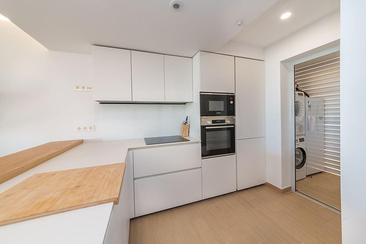 La vivienda ofrece una distribución luminosa y bien aprovechada, con grandes ventanales que aportan una sensación de amplitud y mucha luz natural. La cocina moderna está integrada con el salón, creando un espacio cómodo, acogedor y perfecto para disfrutar en compañía. Desde aquí se accede a la amplia terraza con bonitas vistas al mar, ideal para desayunar al sol, cenar con amigos o relajarse durante todo el año.