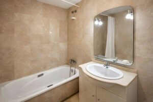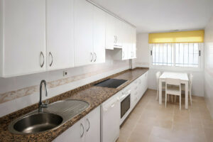 Dispone de dos dormitorios con armarios empotrados, siendo el principal muy luminoso y con salida a la terraza, además de dos baños completos. La cocina es independiente y está totalmente equipada.