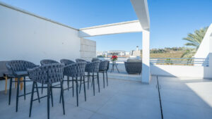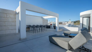 El apartamento dispone de dos amplios dormitorios y tres modernos baños, todos acabados con los más altos estándares. La superficie interior es de 155 m², complementada por una espectacular terraza de 96 m², que ofrece un amplio espacio para el descanso y el entretenimiento. El salón es luminoso y espacioso, con acceso directo a la terraza privada, e incluye doble acristalamiento y armarios empotrados para mayor confort y funcionalidad. La propiedad ha sido recientemente renovada y se presenta en excelente estado, reflejando un firme compromiso con la calidad y el estilo.
