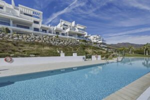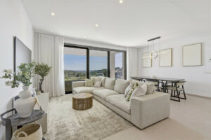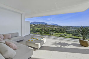 Ocupando una de las mejores orientaciones dentro del complejo, el apartamento ofrece vistas ininterrumpidas al campo de golf, consideradas entre las mejores disponibles en la Costa del Sol, combinando tranquilidad natural con un impactante entorno visual.