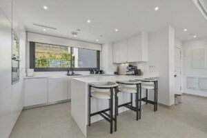 Además de la terraza principal, la propiedad dispone de un magnífico solárium privado de 20 m² con excepcionales vistas al golf. Este espacio elevado es ideal para tomar el sol, disfrutar de bebidas al atardecer o celebrar reuniones con barbacoa mientras se contemplan los fairways — creando una verdadera extensión del espacio habitable y potenciando el atractivo estilo de vida del apartamento.