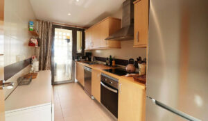 La cocina independiente está totalmente equipada y ofrece un cómodo acceso a la zona de lavandería. El dormitorio principal ofrece baño en suite y acceso directo a la terraza, un lugar perfecto para recibir las primeras luces del amanecer. Un segundo dormitorio, también con armarios empotrados, ofrece espacio y comodidad adicionales.