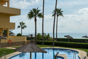 Una joya escondida. Complejo en primera línea de playa en La Cala de Mijas. Apartamento reformado de 2 dormitorios y 2 baños con orientación oeste. El apartamento cuenta con garaje subterráneo, trastero y pistas de tenis y pádel. Magnífica casa de vacaciones o para vivir todo el año gracias a su proximidad a todo lo que La Cala tiene para ofrecer.